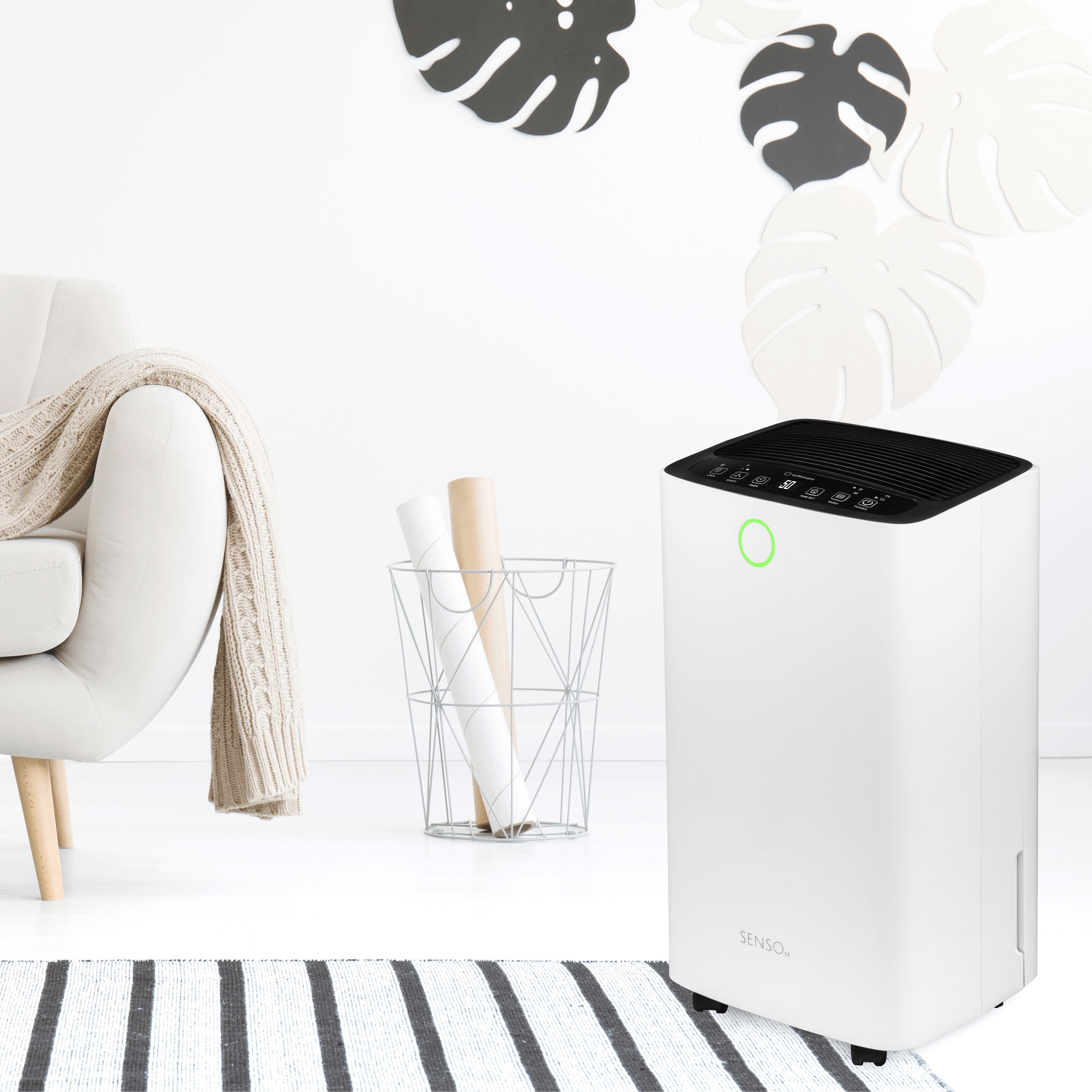 O desumidificador por condensação Turbionaire SENSO 12 remove até 12 litros de água por dia do ar. Este desumidificador portátil pode ser opcionalmente equipado com um filtro HEPA + CARBONO para purificação do ar. O Turbionaire SENSO 12 apresenta um design elegante com um indicador LED de humidade em formato circular, localizado na parte frontal, que permite visualizar facilmente o nível de humidade ambiente. Está equipado com vários modos de funcionamento: modo automático, modo de secagem contínua e modo noturno. O ventilador possui duas velocidades ajustáveis. O SENSO 12 utiliza o refrigerante ecológico R290. É um desumidificador silencioso e energeticamente eficiente, que protege edifícios e os seus conteúdos contra os efeitos prejudiciais da humidade elevada.