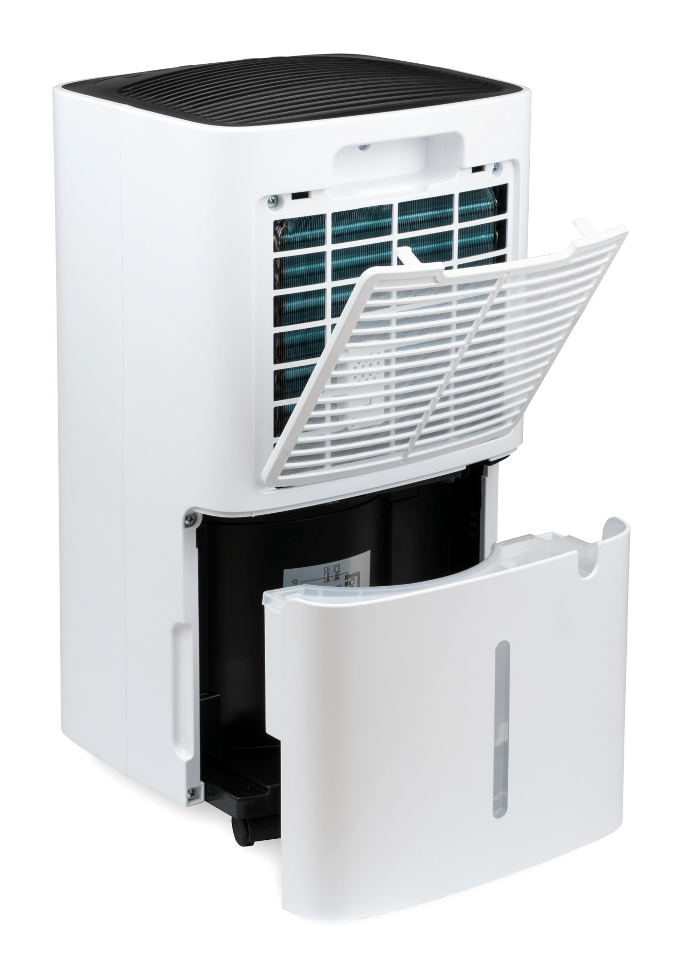 Muito silencioso durante o uso, apenas 36dB Filtro de ar lavável, muito fácil de remover e lavar Reinício automático após uma falha de energia, mantendo as configurações Higróstato eletrónico, moderno e útil Indicador do nível de água na parte traseira da unidade Opção de drenagem contínua, útil para operação intensiva