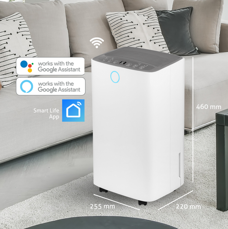 Desumidificador Turbionaire SENSO 13 WIFI com ligação Wi-Fi e indicador LED de humidade O Turbionaire SENSO 13 WIFI regula de forma rápida e eficaz a humidade do ar, proporcionando um ambiente saudável em sua casa ou no escritório. Trata-se de um desumidificador por condensação compacto e silencioso, com capacidade de remover até 13 litros de água por dia, ideal para espaços até 65 m². Este modelo moderno com ligação Wi-Fi pode ser controlado remotamente através da aplicação Smart Life, disponível na Google Play e na App Store. É também compatível com os assistentes de voz da Amazon e do Google. Além disso, o controlo pode ser feito localmente através do painel digital intuitivo localizado na parte superior do equipamento, e a função de bloqueio parental evita alterações acidentais. Pode escolher entre duas velocidades de ventilação, definir o nível de humidade entre 30% e 80% e selecionar os modos disponíveis: AUTO, modo Sleep (reduz a intensidade da luz para mais conforto) ou função de secagem de roupa. O desumidificador funciona de forma extremamente silenciosa (máx. 36 dB(A)) e opera eficazmente em temperaturas ambiente entre 5 ºC e 35 ºC. A água condensada é recolhida num depósito de 2 litros, e o equipamento inclui também um sistema de acoplamento rápido para drenagem contínua, com mangueira incluída. Indicador LED circular de humidade Na parte frontal encontra-se o indicador LED circular de humidade, que muda de cor consoante o nível de humidade na divisão: Azul: abaixo de 45% Verde: entre 45% e 65% Vermelho: acima de 65% Porquê controlar a humidade? Níveis elevados de humidade podem afetar a saúde, causando alergias e problemas respiratórios, além de danificar paredes, móveis, livros e pavimentos. O SENSO 13 WIFI protege eficazmente o seu ambiente interior. Características principais Adequado para áreas até 65 m² Capacidade de desumidificação: até 13 L/dia Conectividade Wi-Fi com app Smart Life Compatível com assistentes de voz Amazon Alexa e Google Assistant Desumidificador por compressor de baixo consumo Controlo simples com display digital intuitivo Indicador LED de humidade: Azul / Verde / Vermelho 2 velocidades de ventilação Modos: AUTO, Sleep, secagem de roupa Temporizador ajustável: 1 a 24 horas Filtro de ar lavável, fácil de remover e limpar Extremamente silencioso: até 38 dB(A) Higróstato eletrónico integrado Função de descongelação automática Depósito de água com 2 litros de capacidade Bloqueio de segurança para crianças Desligamento automático com alarme quando o depósito está cheio Ligação para drenagem contínua (com acoplamento rápido) Reinício automático após falha de energia, mantendo as definições Compacto e fácil de transportar, com pegas integradas e rodas Gás refrigerante ecológico R290 Compatível com o filtro opcional Turbionaire T-Clean Dual (TCFS12) – pode funcionar também como purificador de ar