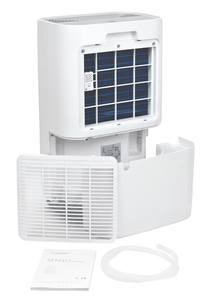 O desumidificador por condensação Turbionaire SENSO 25 WIFI remove até 25 litros de água por dia do ar. Este desumidificador portátil pode ser controlado remotamente através da aplicação Smart Life, garantindo conforto e controlo total a partir do seu smartphone. O Turbionaire SENSO 25 WIFI apresenta um design moderno e elegante, com um indicador LED circular de nível de humidade na parte frontal, permitindo verificar facilmente os níveis de humidade no ambiente. Está equipado com vários modos de funcionamento: modo automático, modo de secagem contínua e modo noturno (sleep). O ventilador possui duas velocidades ajustáveis. O SENSO 25 WIFI utiliza o refrigerante ecológico R290, sendo um desumidificador silencioso e energeticamente eficiente, ideal para proteger edifícios e os seus conteúdos dos efeitos prejudiciais da humidade excessiva.