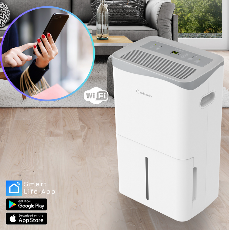 Desumidificador Turbionaire SENSO 50 MAX WIFI com Wi-Fi e indicador LED de humidade O Turbionaire SENSO 50 MAX WIFI regula de forma rápida e eficaz a humidade do ar, promovendo um ambiente saudável tanto em casa como no escritório. Trata-se de um desumidificador por condensação compacto e silencioso, com capacidade para remover até 50 litros de água por dia, ideal para áreas até 220 m². Este modelo moderno com ligação Wi-Fi pode ser controlado remotamente através da aplicação Smart Life, disponível na Google Play e na App Store. É também compatível com os assistentes de voz da Amazon e do Google. O controlo local pode ser feito diretamente através do painel digital intuitivo no topo do aparelho. A função de bloqueio parental evita alterações acidentais. O utilizador pode escolher entre duas velocidades de ventilação e definir o nível de humidade desejado entre 30% e 80%. Estão disponíveis o modo AUTO, o modo Sleep (que reduz a intensidade da luz) e a função de secagem de roupa. O desumidificador funciona de forma silenciosa (máx. 46 dB(A)) e eficaz em temperaturas ambiente entre 5 ºC e 35 ºC. A água condensada é recolhida num depósito de 5,1 litros e o equipamento vem equipado com ligação de acoplamento rápido para drenagem contínua, incluindo mangueira de escoamento. Porque controlar a humidade é essencial Níveis elevados de humidade podem prejudicar a saúde, provocar alergias e problemas respiratórios, além de danificar paredes, móveis, livros e pavimentos. O SENSO 50 MAX WIFI é a solução ideal para ambientes residenciais ou profissionais que exigem desumidificação potente e eficiente. Características principais Para áreas até 220 m² Capacidade de desumidificação: 50 L/dia Ligação Wi-Fi com app Smart Life (Google Play / App Store) Compatível com Amazon Alexa e Google Assistant Desumidificador por compressor, com baixo consumo energético Controlo simples, com visor digital intuitivo 2 velocidades de ventilação Modos: AUTO, Sleep, Secagem de roupa Temporizador ajustável: 1 a 24 horas Filtro de ar lavável, fácil de remover e limpar Funcionamento silencioso: até 38 dB(A) Higróstato eletrónico integrado Descongelação automática Depósito de água com 5,1 litros Bloqueio de segurança para crianças Desligamento automático com alarme quando o depósito está cheio Ligação para drenagem contínua (com mangueira incluída) Reinício automático após falha de energia, mantendo as definições Compacto e fácil de transportar, com pegas integradas e rodas Refrigerante ecológico R290