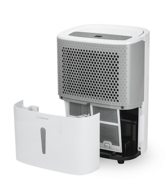 Desumidificador Turbionaire SMART 16M – compacto e energeticamente eficiente O desumidificador Turbionaire SMART 16M garante uma humidade saudável de forma rápida e eficaz, tanto em sua casa como no escritório. Este desumidificador por condensação compacto e silencioso tem uma capacidade de desumidificação de até 16 litros de água por dia, adequado para divisões até 80 m². O Turbionaire SMART 16M é operado através de um painel digital intuitivo Soft-Touch localizado na parte superior do aparelho, que também exibe a humidade definida e atual. Pode escolher entre duas velocidades de ventilação e ajustar o sensor de humidade para o nível desejado, entre 30% e 80%. O desumidificador também oferece os modos AUTO, secagem de roupa e Inside Drying (função de secagem interna). O SMART 16M funciona de forma extremamente silenciosa (máx. 40 dB(A)) e é eficaz mesmo em temperaturas de 5 ºC a 35 ºC. O condensado é recolhido num depósito de 1,8 litros, e o aparelho inclui acoplamento rápido para drenagem contínua, com mangueira incluída. O nível de água no tanque pode ser monitorado através do visor na parte frontal do aparelho. Porque é que é importante controlar a humidade? A humidade excessiva pode afetar a saúde, causando alergias e problemas respiratórios, além de danificar paredes, móveis, livros e pavimentos. O Turbionaire SMART 16M ajuda a manter o ambiente confortável e saudável. Características principais Ideal para áreas até 80 m² Capacidade de desumidificação: até 16 L/dia Desumidificador por compressor, com baixo custo de operação Controlo simples, com visor digital de fácil leitura 2 velocidades de ventilação Modos: AUTO, Secagem de roupa, Inside Drying (função de secagem interna) Modo Sleep Temporizador ajustável: 1 a 24 horas Filtro de ar lavável, fácil de remover e limpar Muito silencioso: até 40 dB(A) Higróstato eletrónico integrado Função de descongelação automática Depósito de 1,8 litros Indicador de nível de água na parte frontal do depósito Desligamento automático com alarme quando o depósito está cheio Ligação para drenagem contínua, com mangueira incluída Reinício automático após falha de energia, mantendo as definições Compacto e fácil de transportar, com pegas integradas e 4 pés de borracha Refrigerante ecológico R290